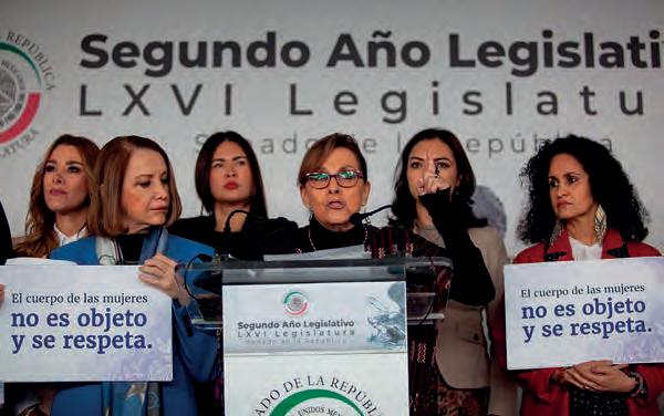 Enfado. Senadoras protestaron contra el acoso sexual que sufrió la presidenta.
