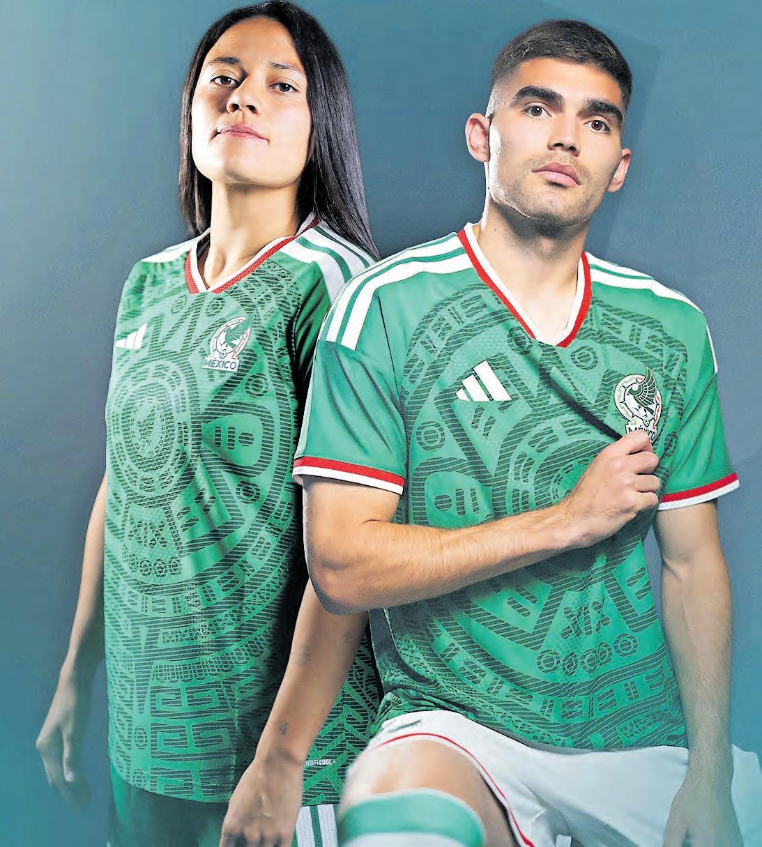 ● ESTRENO. Ayer se reveló el primer uniforme que la Selección Mexicana de Futbol usará en el Mundial 2026. Regresa el verde tradicional con la imagen del Calendario Azteca en el centro y vivos blancos y rojos en mangas y cuello. La vestimenta es similar a la de Francia 98. OVACIONES