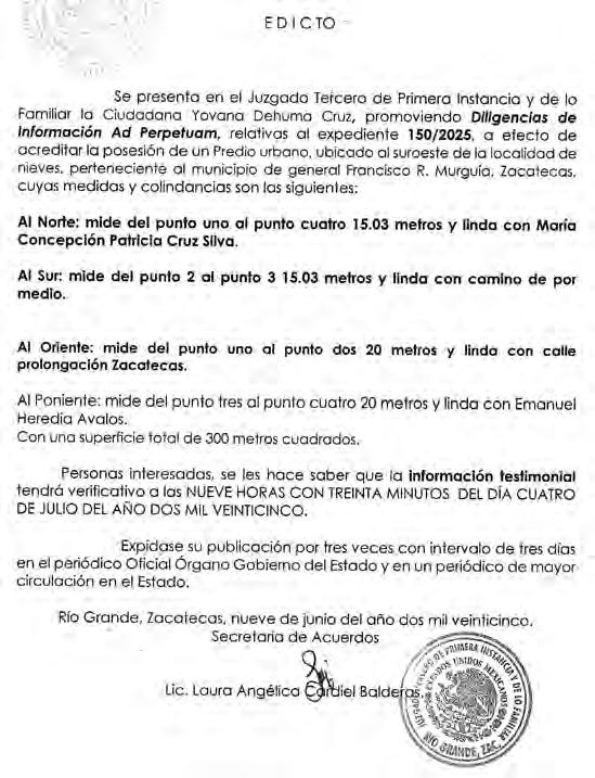 Rosas Sifuentes dijo que la gente no quiere favoritismos, sino que se haga lo correcto. “Vamos a hacer las cosas como deben de ser”, aseguró. En los acuerdos del Consejo General del Instituto Nacional Electoral (INE) se validó el Vigésimo Tercer Circuito que corresponde a Zacatecas, a Valeria Rosas como jueza en especialidad mixta, al igual que Lizbeth González Cortés, Diego Gutiérrez Soto y Fernando Vega Larrea. Blanca Rodríguez González será juez laboral y Jorge Marín Valadez, juez penal. En cuanto a las ma -