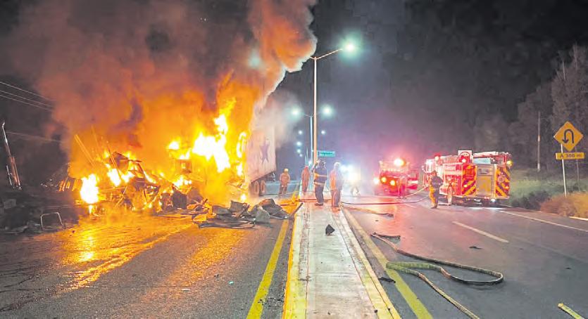 federal 49, a la altura de Pánfilo Natera, en ambos sentidos de circulación fueron quemados tres camiones de carga, mismos que obstruyeron el paso.
