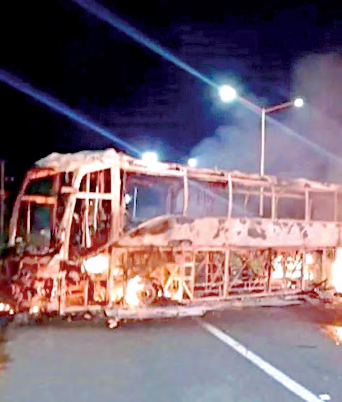 La FGJE reportó un chofer fallecido, al parecer de un infarto; 37 unidades siniestradas; tres cabinas de cobro de peaje incendiadas y se suspendieron clases en Fresnillo y Sombrerete