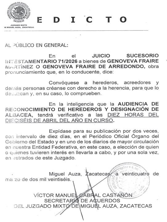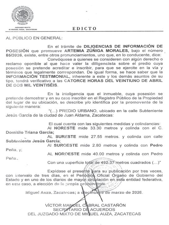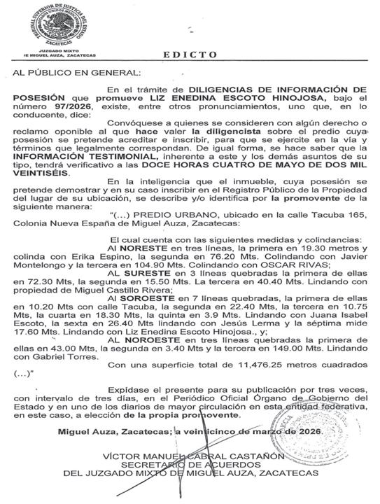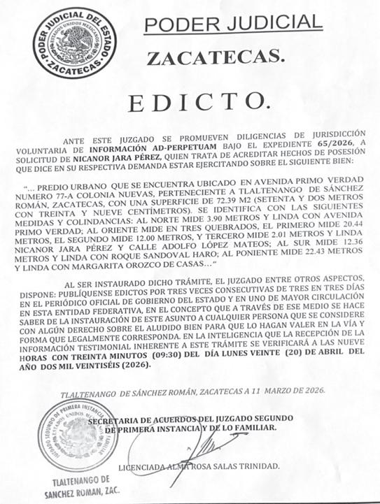 ZACATECAS, 1° EN ACUERDOS REPARATORIOS