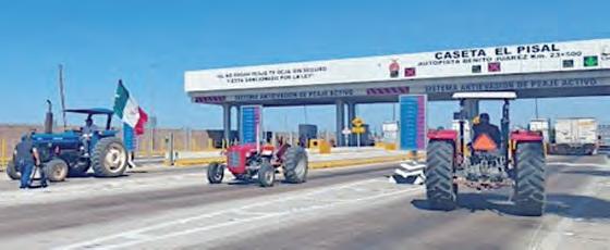 ● ESTE LUNES, Agricultores de Áreas Agrícolas y Pecuarias de Zacatecas (Aaaprizac) protestaron en la cervecera y tomaron la caseta de peaje de Calera, donde permitieron el libre tránsito de vehículos, al sumarse al paro convocado por el Frente Nacional para el Rescate del Campo Mexicano (FNRCM) para exigir precios justos. ÁNGEL LARA METRÓPOLI A3