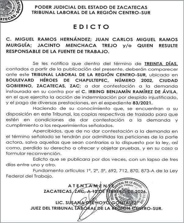 ● JEREZ DE GARCÍA SALINAS será blindado durante la Feria de la Primavera 2026, que se realizará del 1 al 13 de abril, por lo cual autoridades municipales se reunieron con las corporaciones de seguridad de los tres órdenes de gobierno. El alcalde Rodrigo Ureño Bañuelos informó que patrullarán efectivos del Ejército Mexicano, la Guardia Nacional (GN), así como las policías Estatal Preventiva (PEP) y la Municipal. CUQUIS HERNÁNDEZ MUNICIPIOS A11