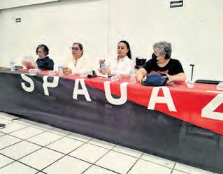 y la parte patronal. “No hay un avance significativo cuando se trata de indemnización por defunción, ni del pago del adeudo de los jubilados”, explicó. González Arenas dio a conocer que respecto al incumplimiento de pago de lasprestacionesestablecidasenlacláusula 41, fracción10 y11del Contrato Colectivo de Trabajo (CCT), tampoco hay ofrecimientos serios por parte de la Rectoría, por lo cual el SPAUAZ pugnará por que continúen las mesas de negociación.