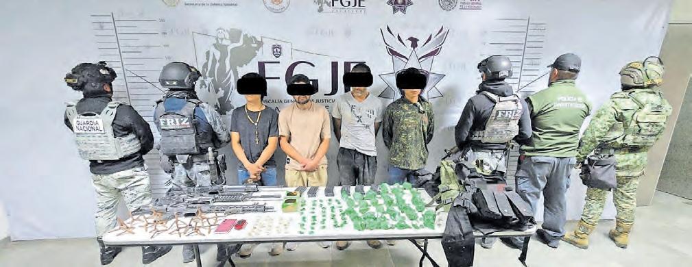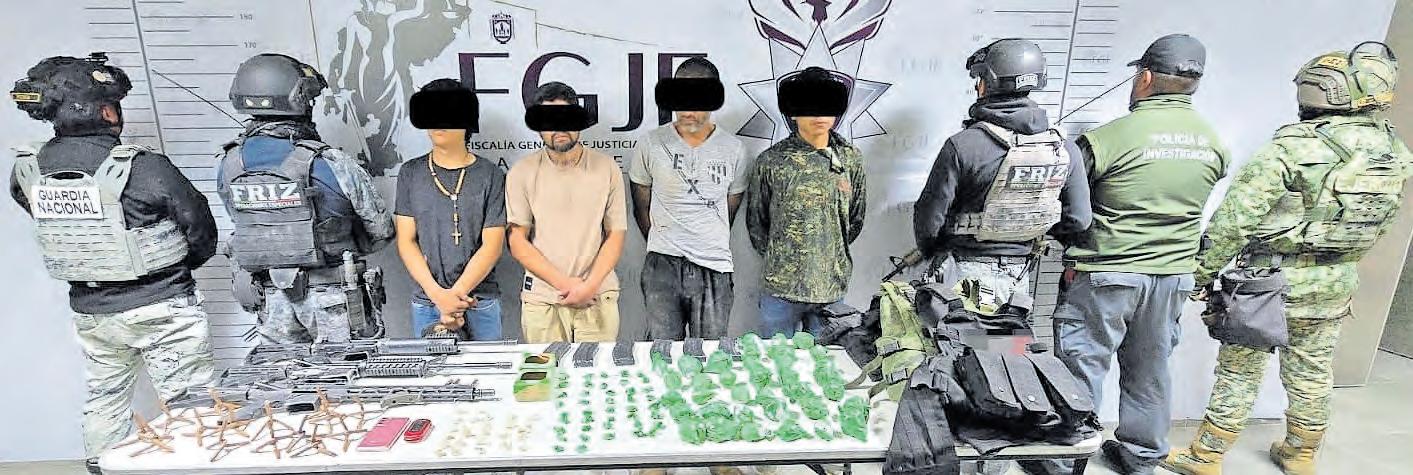 Los cuatro masculinos fueron detenidos y junto con el armamento, droga, explosivos y demás indicios fueron puestos a disposición de la autoridad competente para la integración de la investigación correspondiente.