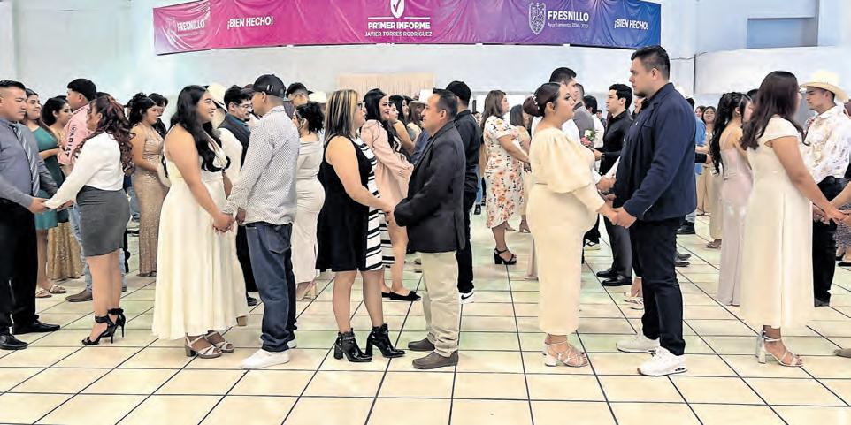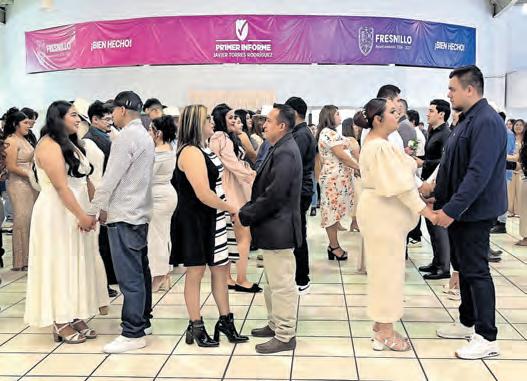 ● SETENTA parejas contrajeron nupcias ante el Registro Civil de Fresnillo, en la ceremonia de matrimonios colectivos organizada por el ayuntamiento en el marco del Día del Amor y la Amistad. La ceremonia se realizó en el Centro de Convenciones, donde se reunieron familias y amigos de las parejas. TEXTO Y FOTO: CARLOS LEÓN FRESNILLO A9