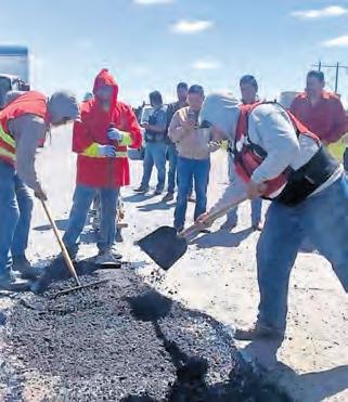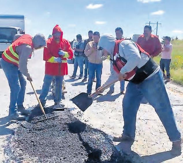 ● EN RÍO GRANDE, después de que mediante redes sociales varios ciudadanos llamaron a organizarse y salir a las carreteras para tapar baches por su cuenta, este martes el alcalde Mario Córdova salió junto con una cuadrilla para rellenar los hoyos y compactar el terreno en la vía federal 45 que va a Ciudad Juárez.