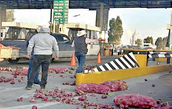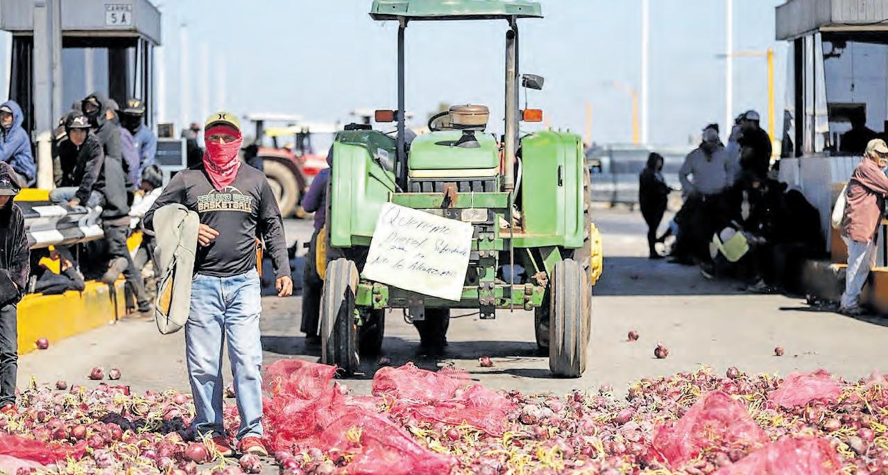Con arpillas de cebolla, tractores y camionetas, jornaleros agrícolas y productores se apostaron durante10 horas en las principales conexiones de las carreteras federales 23, 45 y 54, como lo hicieron miles de campesinos que se sumaron al paro nacional en al menos 24 estados.