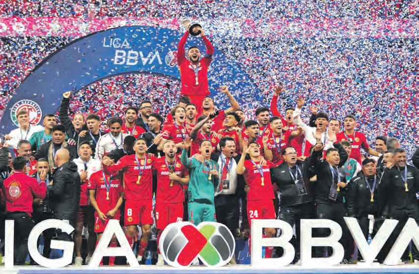● EL DIABLO se coronó en el Estadio Nemesio Diez como el mejor equipo del Apertura 2025 (y de todo el año), al ganar en penales 9-8 al Tigres, luego de empatar 2-2 en el marcador global. Toluca se convirtió en bicampeón y 12 veces monarca del futbol mexicano. Un título 12 no solo significa ser de nuevo el campeón del balompié nacional, sino colocarse como el segundo equipo más ganador de nuestro país, solo por detrás del América con 16. OVACIONES O2 A LA 05
