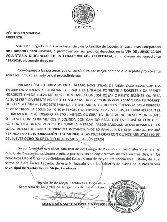 ● ESTE SÁBADO, el gobierno de Zacatecas informó que se localizaron restos óseos en el ejido de Boquillas, Ojocaliente, en una prospección forense que se llevó a cabo “como parte de las acciones que se emprenden en atención a los acuerdos establecidos con colectivos”.