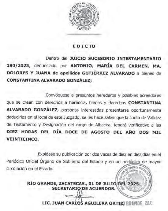 Clausura TSJEZ periodo ordinario
