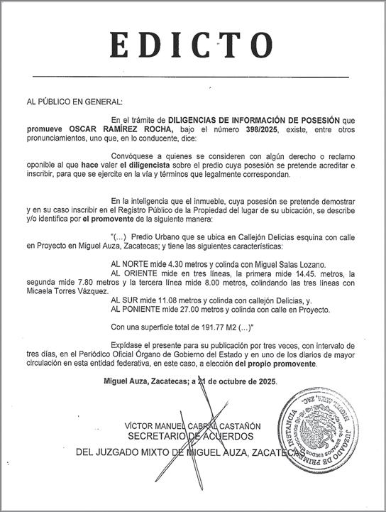 pudiera encabezar una alianza. DespuésdequeanivelnacionalelPRD perdió su registro, Néstor Santacruz aseguróqueenestanuevaetapa,elpartidoen Zacatecas mantendrá su registro. En otro tema, reconoció que se involucrócomoasesorjurídicodeunadelasvíctimas en el conflicto dentro del Cabildo de Tepechitlán.