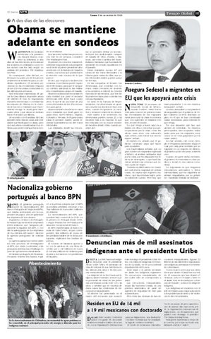 ADRID. El gobierno portugués anunció la nacionalización del Banco Portugués de Negocios (BPN), que estaba amenazado por la suspensión de pagos, a fin de garantizar los depósitos de los clientes. El gobierno, el Banco de Portugal y la estatal Caja General de Depósitos (CGD) indicaron que “aseguran plenamente la liquidez del BPN, y con ello la salvaguarda de los depósitos de los clientes del banco”, informó la agencia portuguesa de noticias Lusa. La agencia agregó que fueron abiertos seis procesos de investigación al BPN, que darán continuidad a las pesquisas abiertas tras el hallazgo en junio de operaciones clandestinas. El ministro portugués de Finanzas, Fernando Teixeira dos Santos, expli-