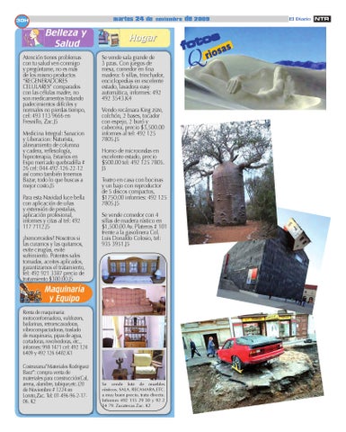 Se vende sala grande de 3 pzas. Con juegos de mesa, comedor en fina madera: 6 sillas, trinchador, enciclopedias en excelente estado, lavadora easy automática, informes: 492 492 3543.K4 Vendo recámara King zize, colchón, 2 bases, tocador con espejo, 2 buró y cabecera, precio $3,500.00 informes al tel: 492 125 7805.J5 Horno de microondas en excelente estado, precio $500.00 tel: 492 125 7805. J5 Teatro en casa con bocinas y un bajo con reproductor de 5 discos compactos, $1750.00 informes: 492 125 7805.J5 Se vende comedor con 4 sillas de madera rústico en $1,500.00 Av. Plateros # 101 frente a la gasolinera Col. Luis Donaldo Colosio, tel: 935 3951.J5