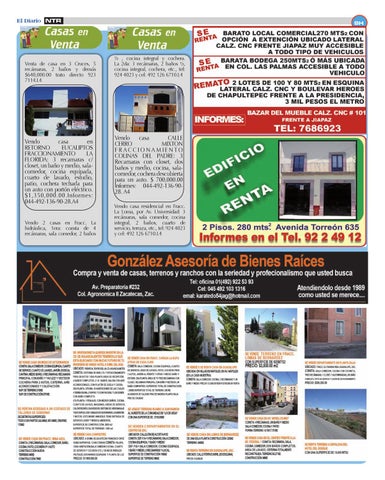 Vendo casa CALLE CERRO MIXTON FRACCIONAMIENTO COLINAS DEL PADRE: 3 Recamaras con closet, dos baños y medio, cocina, salacomedor, cochera descubierta para un auto. $ 700,000.00 Informes: 044-492-136-9028. A4 Vendo casa residencial en Fracc. La Loma, por Av. Universidad: 3 recámaras, sala comedor, cocina integral, 2 baños, cuarto de servicio, terraza, etc., tel: 924 4023 y cel: 492 126 6710.L4