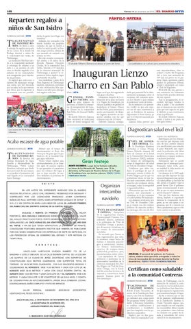 lugar, en el que fue organizada una gran coleadera. Momentos después de la celebración de la misa en honor a la Virgen de Guadalupe, los charros y público en general se trasladaron al Lienzo Charro de San Pablo, para presenciar a jinetes provenientes de distintos lugares, montados en hermosos caballos, con los que colearon cerca de 100 toros. Gilberto Zamora, acompa-