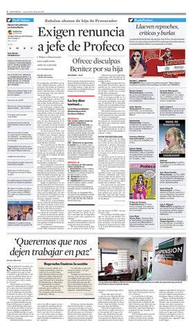 Edna Jaime, directora de México Evalúa, pidió a las autoridades evitar un uso discrecional, preferente y abusivo del poder, tras el caso de la hija del titular de la Profeco, quien amenazó con clausurar un restaurante porque no le dieron la mesa que quería. “Se debe cerrar la puerta al uso discrecional y abusivo. En la medida que cerremos estos espacios que son propicios a la corrupción o al uso discrecional del ejercicio de la autoridad estaremos todos mejor. “Hay que encontrar el fino equilibrio entre una regulación efectiva y delimitar muy claramente cuáles son los alcances de quienes deben aplicar la regulación, porque si no vamos a seguir viendo esto al infinito”, dijo. En entrevista, la especialista en temas de transparencia y rendición criticó la actuación de la Profeco en este caso, pues no sólo agilizó una queja por “influencias”, dijo, sino que al parecer también hizo uso discrecional de facultades.