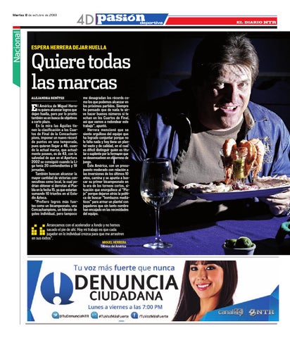 me desagradan los récords como los que podemos alcanzar en los próximos partidos. Siempre he pensado que de nada te sirve hacer buenos números si te echan en los Cuartos de Final, así que vamos a redondear este trabajo”, apuntó. Herrera mencionó que se siente orgulloso del equipo que ha logrado conjuntar porque no le falta nada y hoy tiene un plantel vasto y de calidad, en el cual es difícil distinguir quién es titular o suplente por la forma en que se desenvuelven en el terreno de juego. Este América, con un presupuesto moderado con relación a las inversiones de los últimos 10 años, camina y se apunta a buscar su primer bicampeonato en la era de los torneos cortos, situación que enorgullece al “Piojo” porque dejaron atrás la política de buscar “bombazos mediáticos” para armar un plantel con jugadores que sin tanto nombre han encajado en las necesidades del equipo.