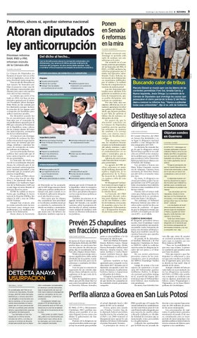 desviar a sus cuentas bancarias más de 200 millones de pesos de las arcas municipales. Las precampañas de aspirantes la gubernatura potosina terminaron el pasado 15 de enero, actualmente está en curso periodo de intercampañas y los partidos políticos tienen hasta la tercera semana de febrero para registrar a sus candidatos.