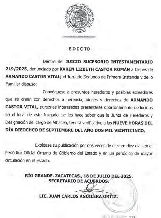 Para el 26 de agosto: en las secretarías General de Gobierno, de Administración (Sad), de Economía de Zacatecas (Sezac), de Finanzas (Sefin), de Desarrollo Social (Sedesol), del Zacatecano Migrante (Sezami), de la Función Pública (SFP), de Agua y Med io Ambiente (SAMA) y de Desarrollo Urbano, Vivienda y Ordenamiento Territorial del estado de Zacatecas y Planeación (Seduvot).