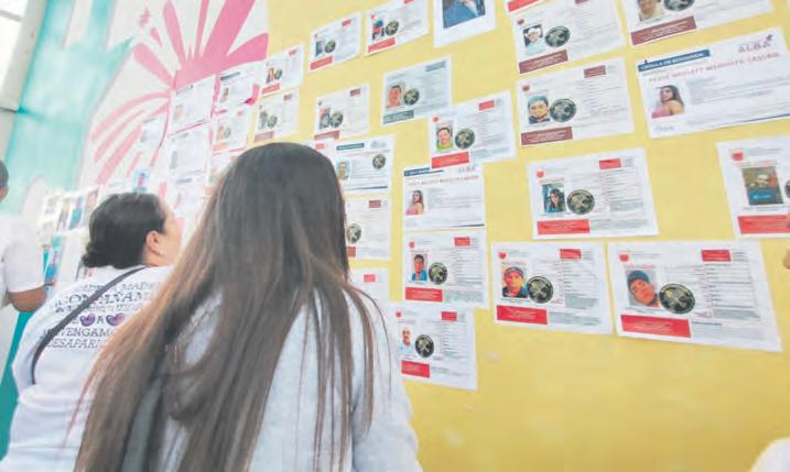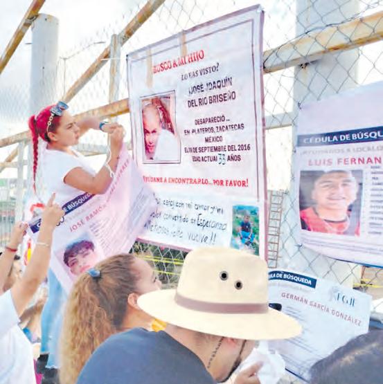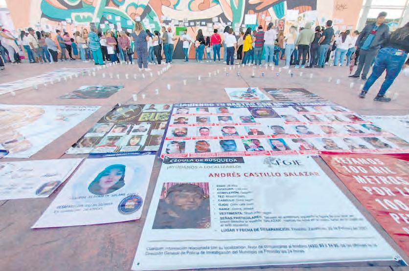 ● CON VELADORAS fotografías, lonas y fichas de búsqueda, madres buscadoras y familiares de desaparecidos se congregaron en la entrada de la Feria Nacional de Fresnillo (Fenafre), como parte de una protesta pacífica para exigir la búsqueda y localización de los suyos. Las 300 personas reunidas atendieron una invitación difundida por redes sociales. CARLOS LEÓN FRESNILLO A9