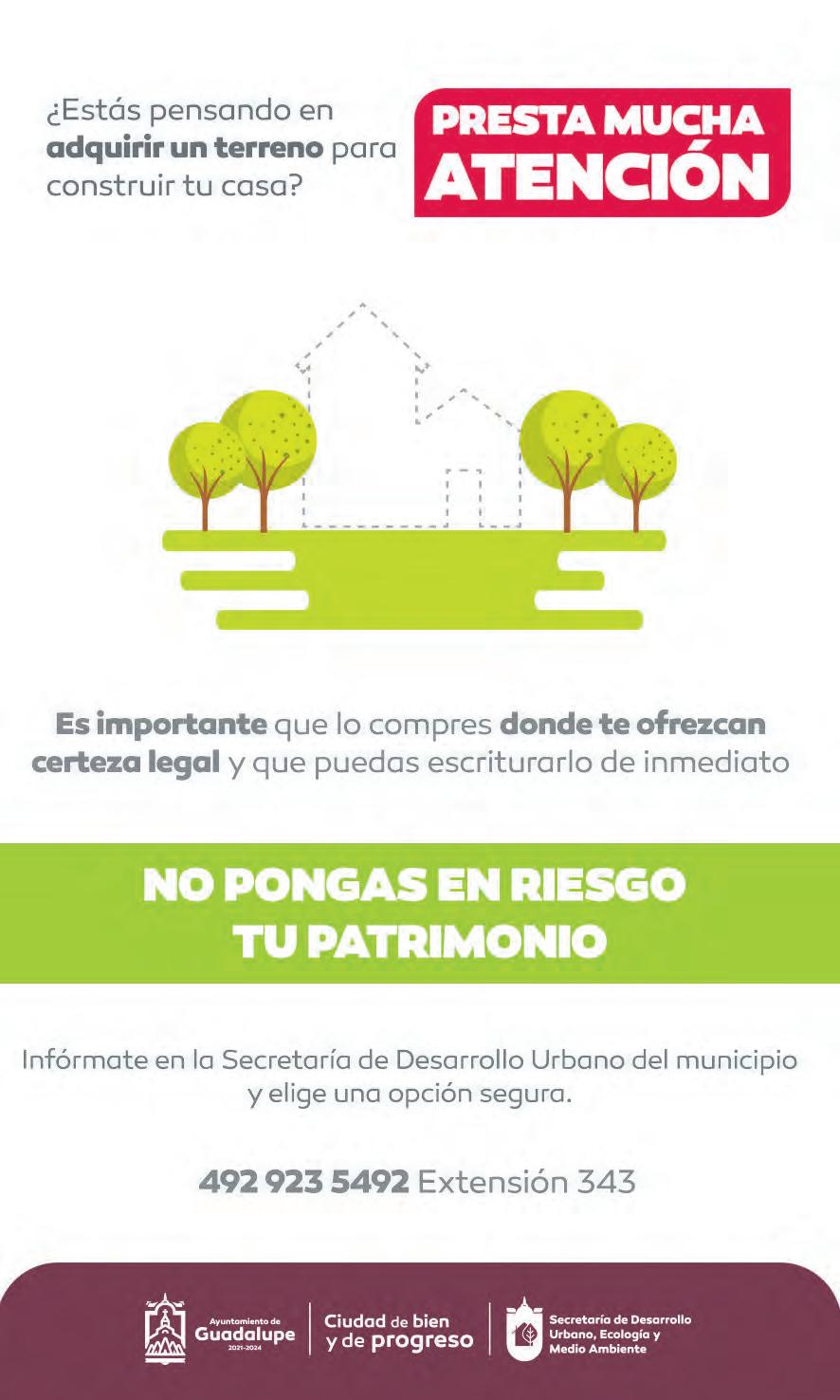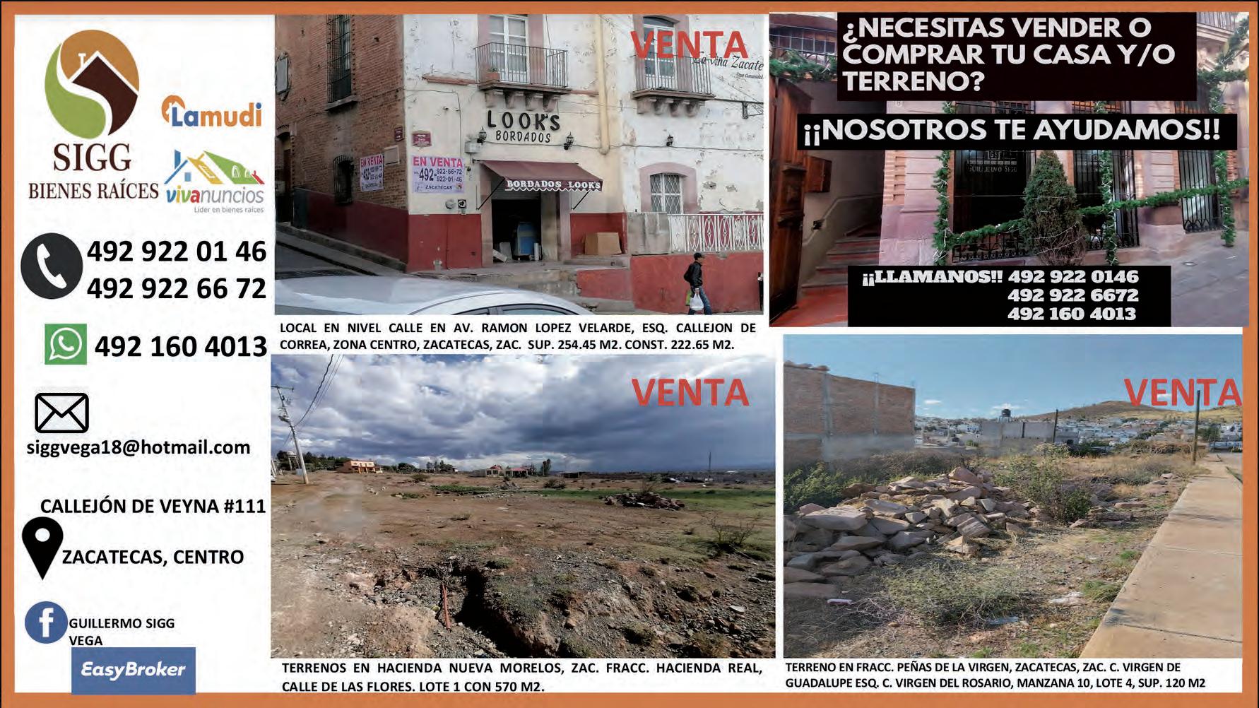 7. Inf. Bienes Raíces Guillermo Sigg tel. 492 9220146 y 492 9226672.
