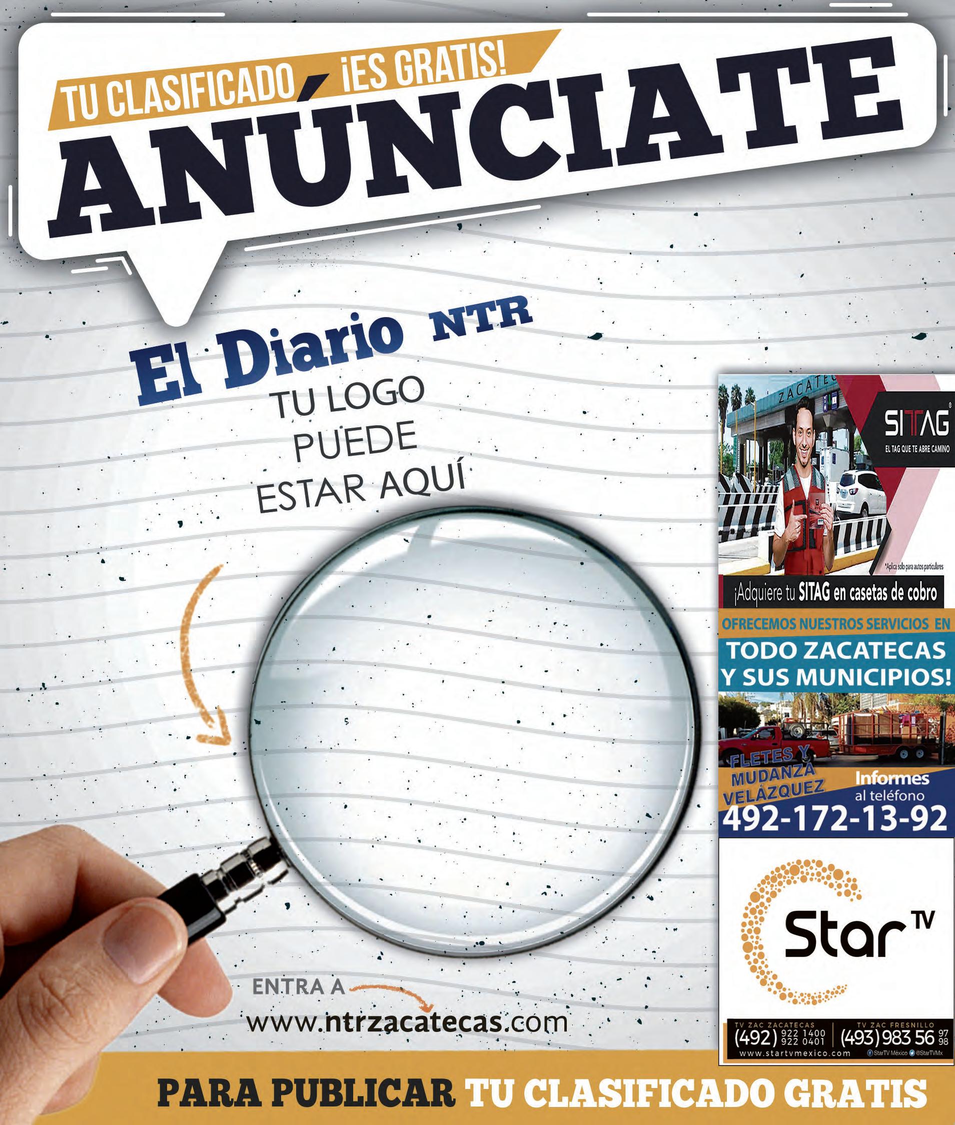 $15.00 FRESNILLO 94.3 FM RÍO GRANDE 98.7 FM / SOMBRERETE 92.3 FM / TLALTENANGO 90.1 FM Y 1100 AM / CONCEPCIÓN DEL ORO 101.3 FM / PINOS 102.5 FM www.ntrzacatecas.com
