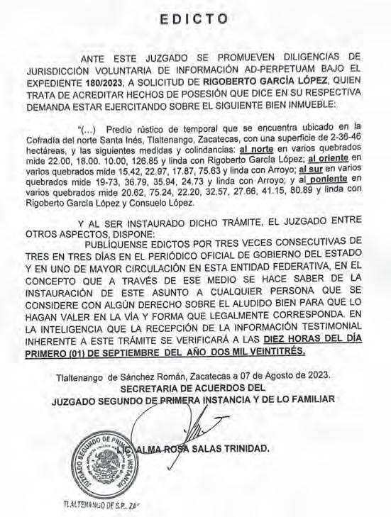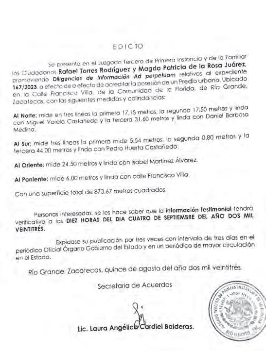 Miércoles 23 de agosto de 2023 Zacatecas, Zac. Año XVI