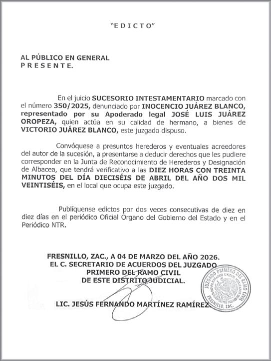 El diputado federal morenista Alfonso Ramírez Cuéllar anunció que la Convención Zacatecana, inicialmenteprevistaparael28demarzo en el Ágora González Echeverría, en Fresnillo, se reprogramó para el 25 de abril en el mismo lugar. La decisión fue tomada de común acuerdo entre el comité organizador y el legislador, con el propósito de evitar conflictos logísticos derivados de la visita de trabajo de la presidenta Claudia Sheinbaum Pardo a Zacatecas, ese mismo día, pues se busca