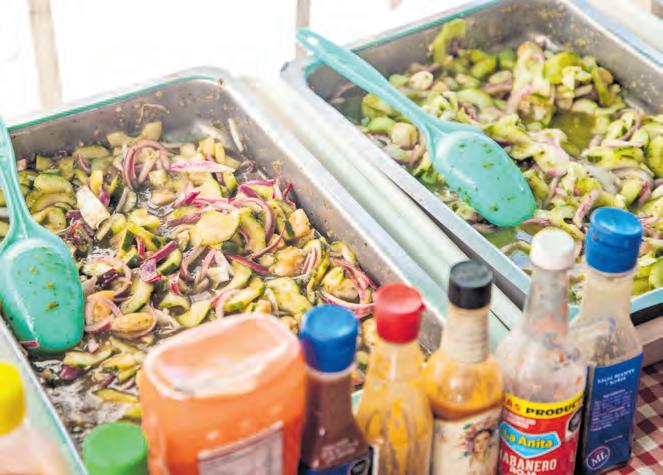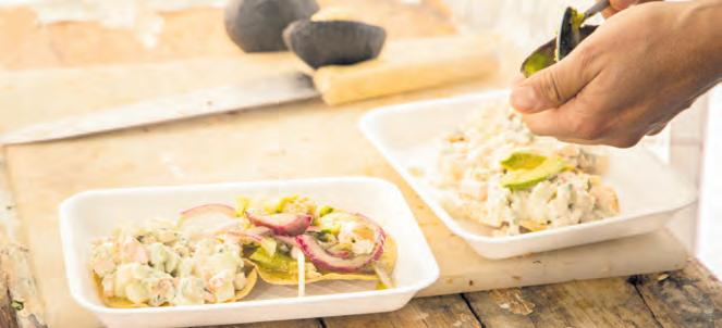 ● EN EL NEGOCIO ubicado en el 201 de la calle Arroyo de la Plata ofrecen deliciosos platillos del mar y su especialidad, las tostadas de ceviche y camarón, con la amable atención de Doña Tere.