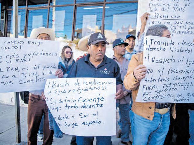 Comisariados ejidales y decenas de campesinos protestaron en las oficinas del Registro Nacional Agrario (RAN) para quejarse por el mal servicio recibido y retraso en trámites. Además, denunciaron presuntos cobros por los servicios por parte de la delegada Rita Guadalupe Díaz González, aunque no presentaron pruebas.