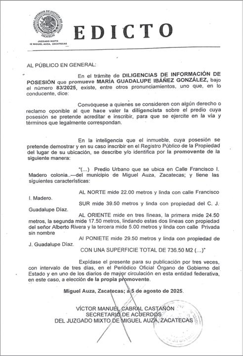 ubicada en Calera frente a cendy y asilo de ancianos
