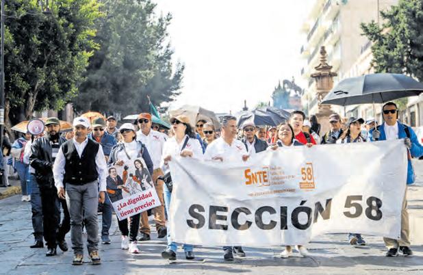 Después de marchar por las calles del Centro Histórico de la capital, maestros de la Sección 58 del SNTE bloquearon el bulevar metropolitano para exigir al gobierno estatal que detenga el proceso de federalización de 874 plazas. Hasta el cierre de esta edición sigue la toma de la vía más transitada de la zona conurbada. El recorrido terminó en la explanada del Congreso del Estado, donde los representantes de las organizaciones sindicales expusieron sus demandas y buscaron que los atendiera las autoridades; sin em-