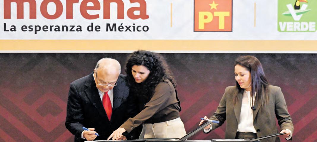 orena, PT y el PVEM firmaron una declaración en la que refrendan su alianza para la elección intermedia de 2027, con el fin de garantizar mayoría calificada a la 4T’ en la Cámara de Diputados. Los líderes de las tres fuerzas políticas también ratificaron su apoyo, respaldo y acompañamiento a la presidenta Claudia Shaeinbaum. EL
