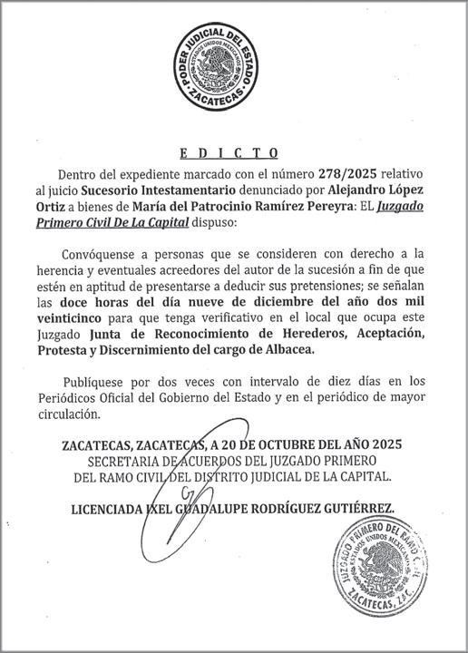 ● EL GOBERNADOR de Zacatecas, David Monreal Ávila, afirmó que la entidad se ha convertido en ejemplo nacional en acompañamiento con operativos a colectivos de madres buscadoras y en la reducción de casos de desaparición de personas. Entrevistado tras participación en los festejos por los 400 años de Aguascalientes, el mandatario destacó que en el estado se implementó una mesa de trabajo permanente, integrada por representantes de los colectivos de buscadoras, las fiscalías generales de la República (FGR), de Justicia del Estado (FGJE), la Guardia Nacional (GN), el Ejército Mexicano y la Policía Estatal Preventiva (PEP), la cual se reúne semanalmente para definir los puntos donde se realizarán operativos de búsqueda. Afirmó que Zacatecas es actualmente el estado con más operativos y acompañamientos a madres buscadoras, una labor que, dijo, ha permitido establecer un registro y seguimiento constante de las acciones.