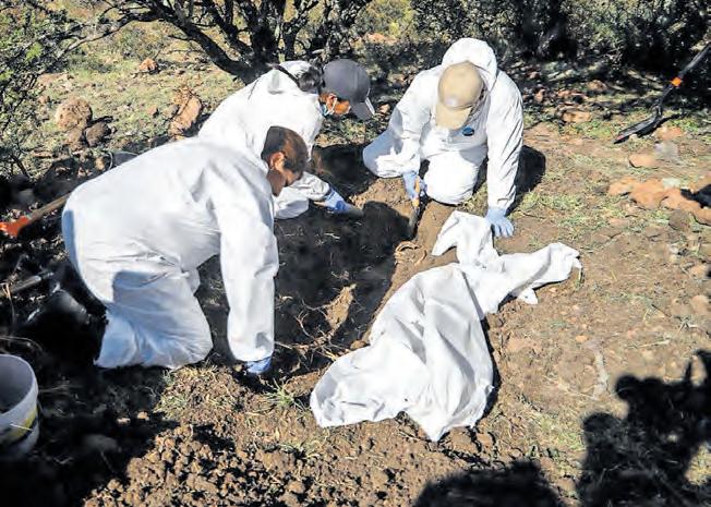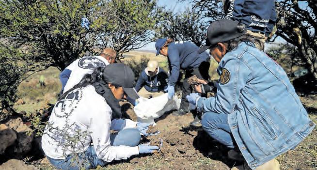 ● ESTE SÁBADO, en el segundo día de búsqueda encabezado por los colectivos Las Escarabajos y Hasta Encontrarte, de Guanajuato, se realizó una prospección en la comunidad Cerro Colorado, Fresnillo, donde encontraron un cráneo, costillas y huesos cortos expuestos bajo un huizache.