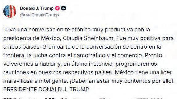 SHEINBAUM SEGURIDAD Y COMERCIO, TEMAS DE LLAMADA CON TRUMP