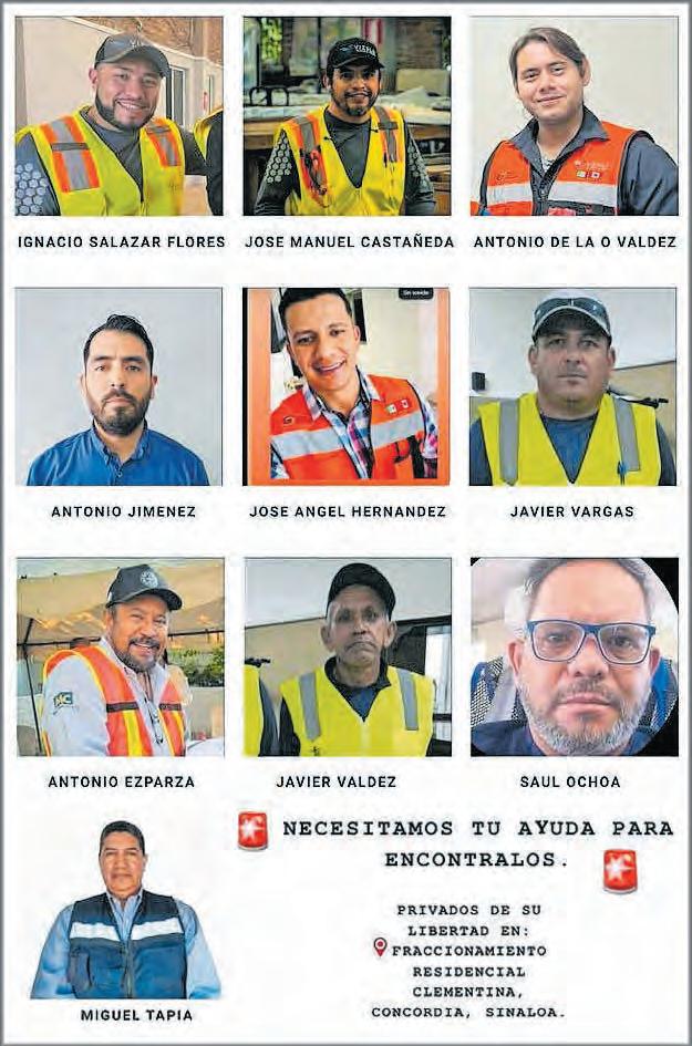 de la libertad por un grupo armado la madrugada del 23 de enero que irrumpió en su campamento, en un sitio conocido como La Clementina, en la comunidad serrana de Pánuco, donde la empresa rentaba para alojar a su personal. Entre los plagiados hay ingenieros, geólogos,supervisoresyguardiasdeseguridad, originarios de Sonora, Sinaloa, Chihuahua y Zacatecas. METRÓPOLI A2