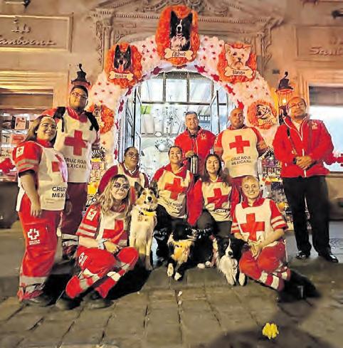 KNAY, Orly, y Rocky, junto a su manejador Edgar Martínez, de la Fuerza de Tarea 1 de la Cruz Roja Mexicana, visitan el estado, pues se montó un altar dedicado a los perritos rescatistas fallecidos.