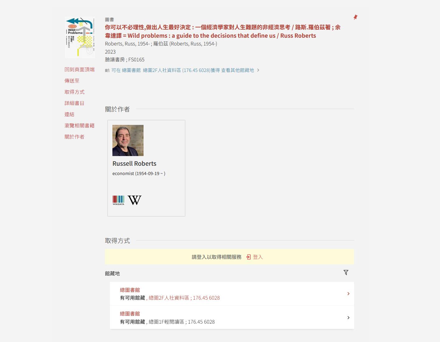 當您發現要找的書已經被借走了,可以直接在館藏目錄進行線上預約。等到該本書歸 還時,系統就會自動以Email通知您至指定地點取書,請在取書期限內到館借閱。
