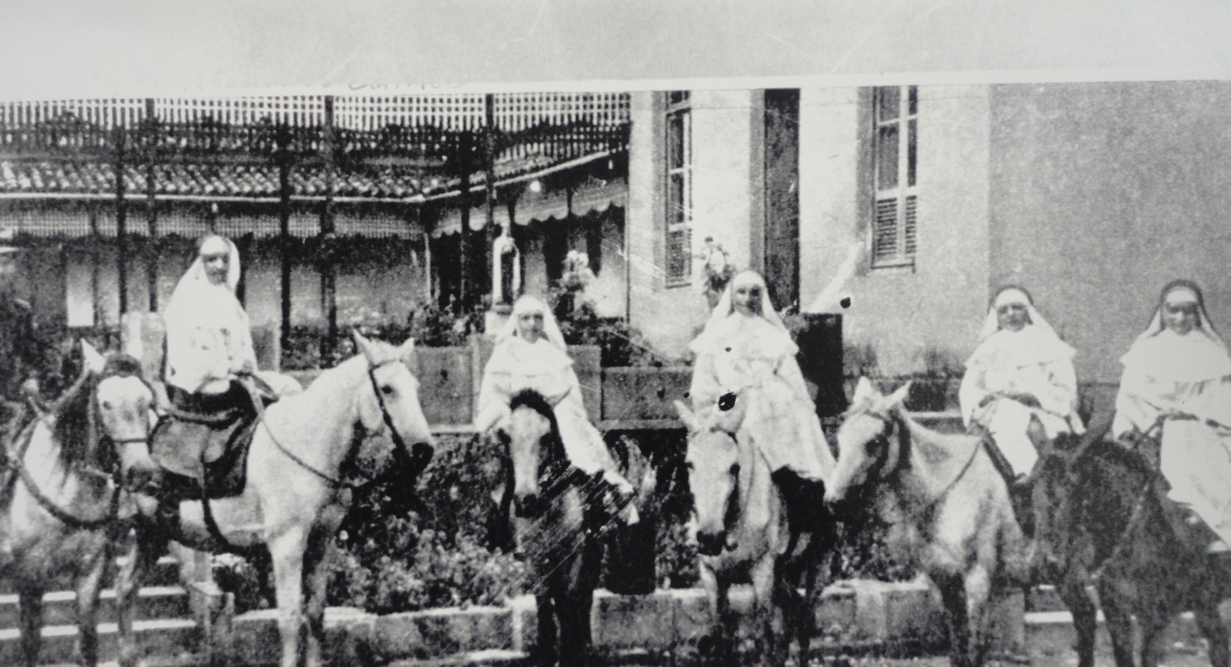 Irmã M. Joseph Aubeleau, (Priora - 33 anos) , Irmã M. Octavie, (Vice-Priora - 32 anos), Irmã M. Reginald Rech, (Ecônoma - 25 anos), Irmã M. Eléonore Caze, (Secretária do Conselho e professora dos alunos - 28 anos) , Irmã M. Hildegarde Gaillard, (39 anos) e Irmã Julienne Mailhes, (32 anos), conversas. Madre M. Joseph, Irmã M. Eléonore e Irmã M. Réginald foram designadas para partir a Lisboa, a fim de aprender o português.