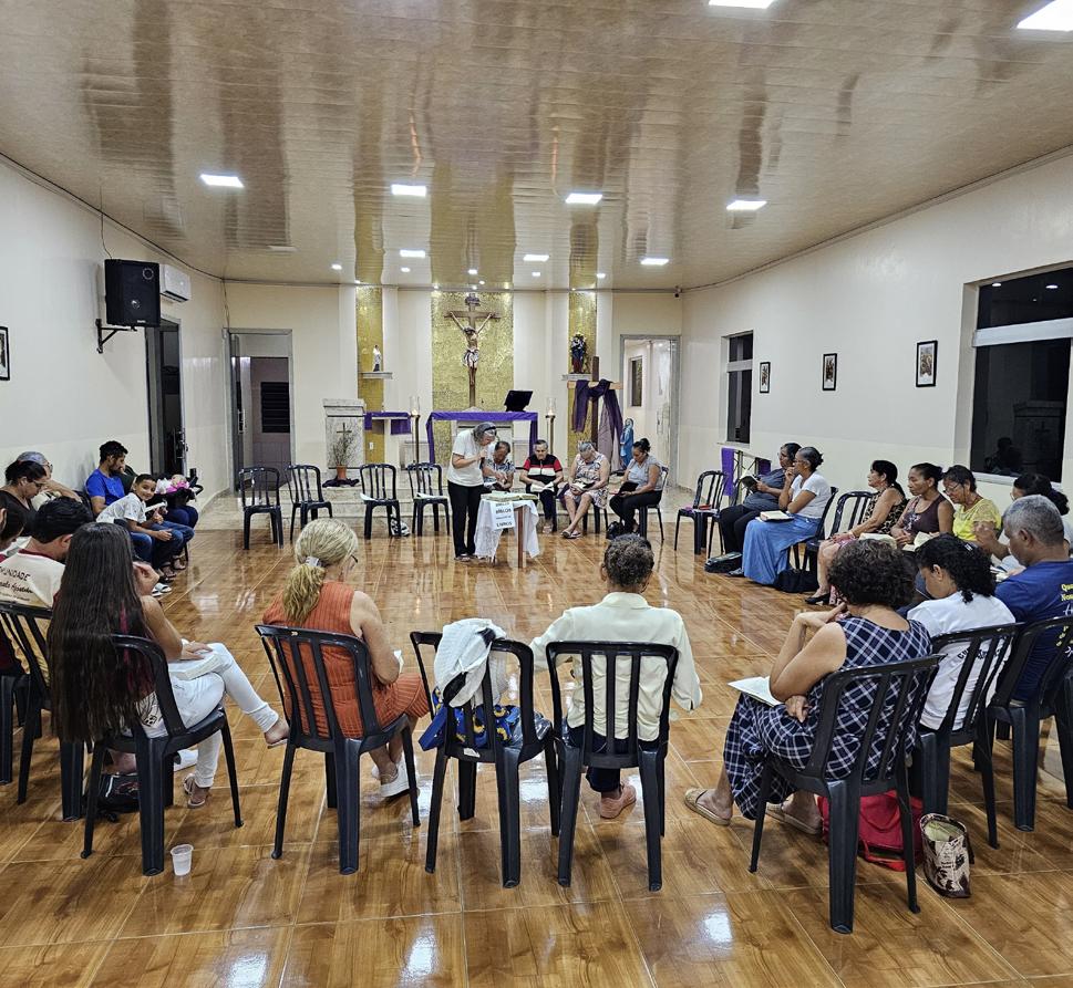 A Irmã Sandra Camilo Ede, da Comunidade Bem-Viver, de Goiânia/GO, participou, no dia 15 de março, do 1º Módulo de Formação Bíblica, na Comunidade Perpétuo Socorro, da Paróquia Santo Eugênio Mazenod, em Aparecida de Goiânia/GO. A convite do Padre Wesley Soares de Araújo, OMI, a formação foi realizada sob o tema “Introdução geral à Bíblia”.