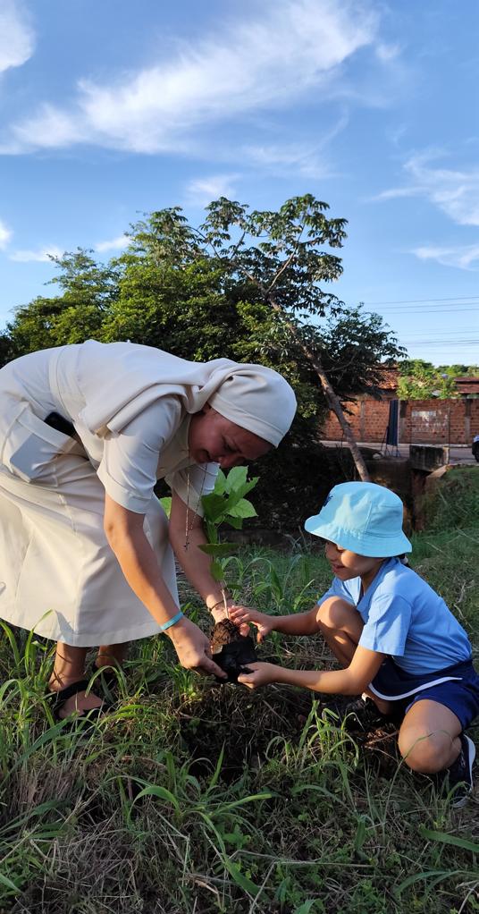 A Irmã Terezinha Ferreira da Costa também falou de sua experiência ao participar do plantio: “Observaroentusiasmodosalunosaoparticiparemdessecuidadocomomeioambienteésempre inspirador. Eles entendem que cada árvore plantada é um gesto de amor pela Terra, uma contri-
