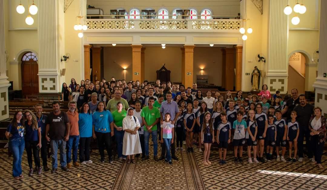 famílias e alunos nas portarias da Escola, e os colaboradores participaram da Santa Missa em honra ao Santo. Por sua vez, os alunos tiveram a oportunidade de conhecer um pouco mais sobre a vida de São Domingos através de vídeos e leituras apresentados pela Pastoral Escolar.