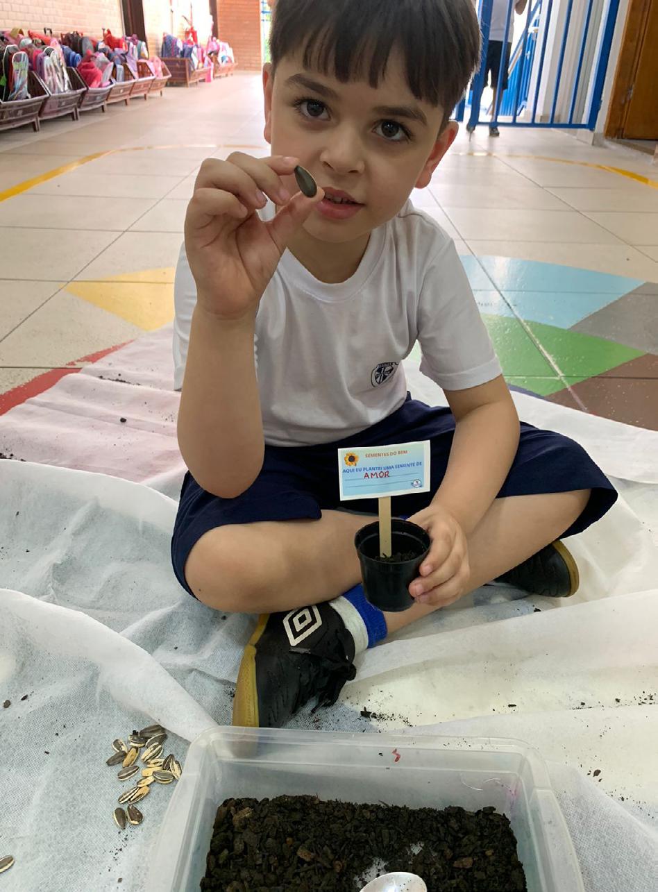 Após ouvirem a história, as crianças foram levadas a refletir sobre a importância da verdade. A partir dessa contemplação, surgiu uma metáfora: “Que tipo de sementes estamos plantando em nossas vidas e como cuidamos delas para colher bons frutos?”.