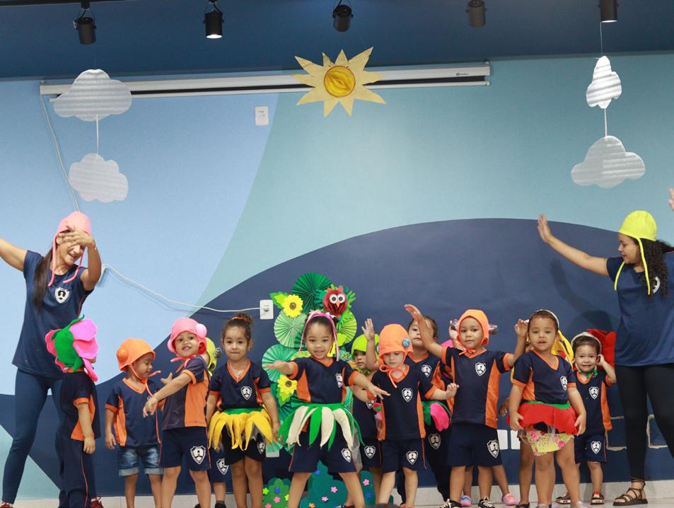 As crianças também foram as atrações principais de uma apresentação teatral vibrante, que mesclou dança e narrativas focadas no autocuidado e na preservação do meio ambiente, tornando o aprendizado mais divertido e significativo.