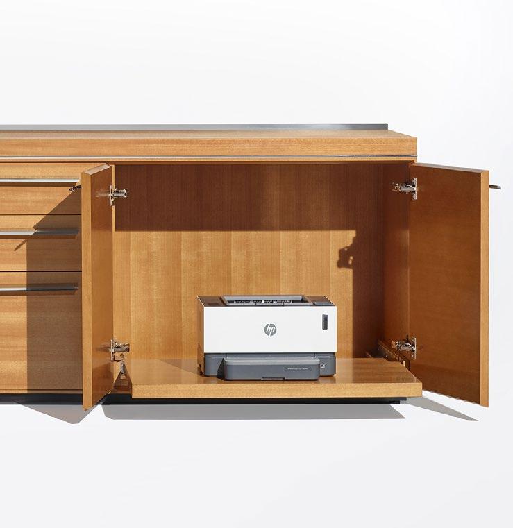 Utility Credenza with Refrigerator and Trash and Recycling Unit
