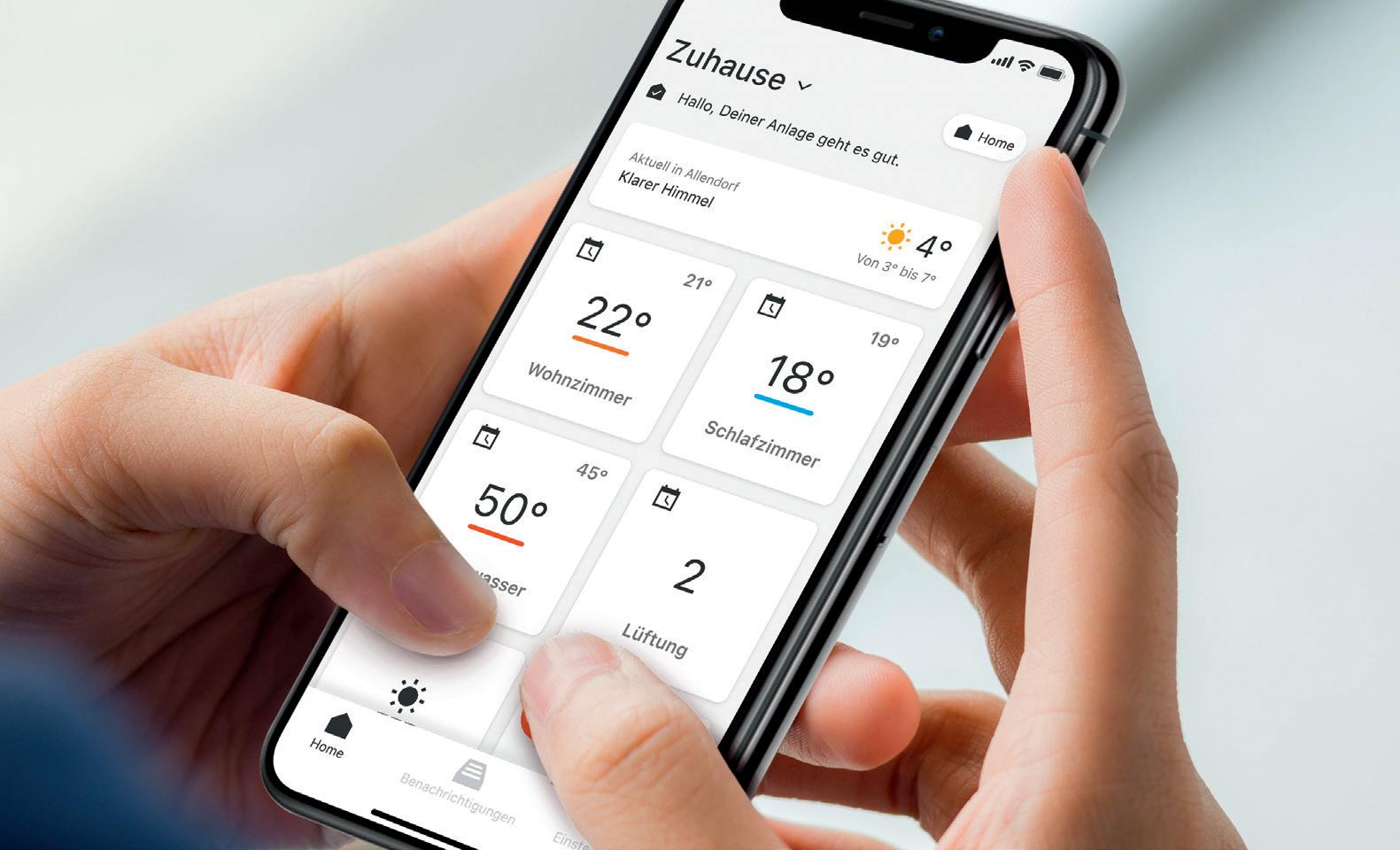 Til hurtig og ukompliceret kommunikation med Viessmann One Base behøves der kun den gratis ViCare-app; det integrerede Viessmann Energy Management System klarer resten. Desuden kan installatøren fjernstyre systemet og reagere hurtigere i tilfælde af fejl og andre uregelmæssigheder. Således undgås unødige kørsel og aftaler med VVS-partneren.