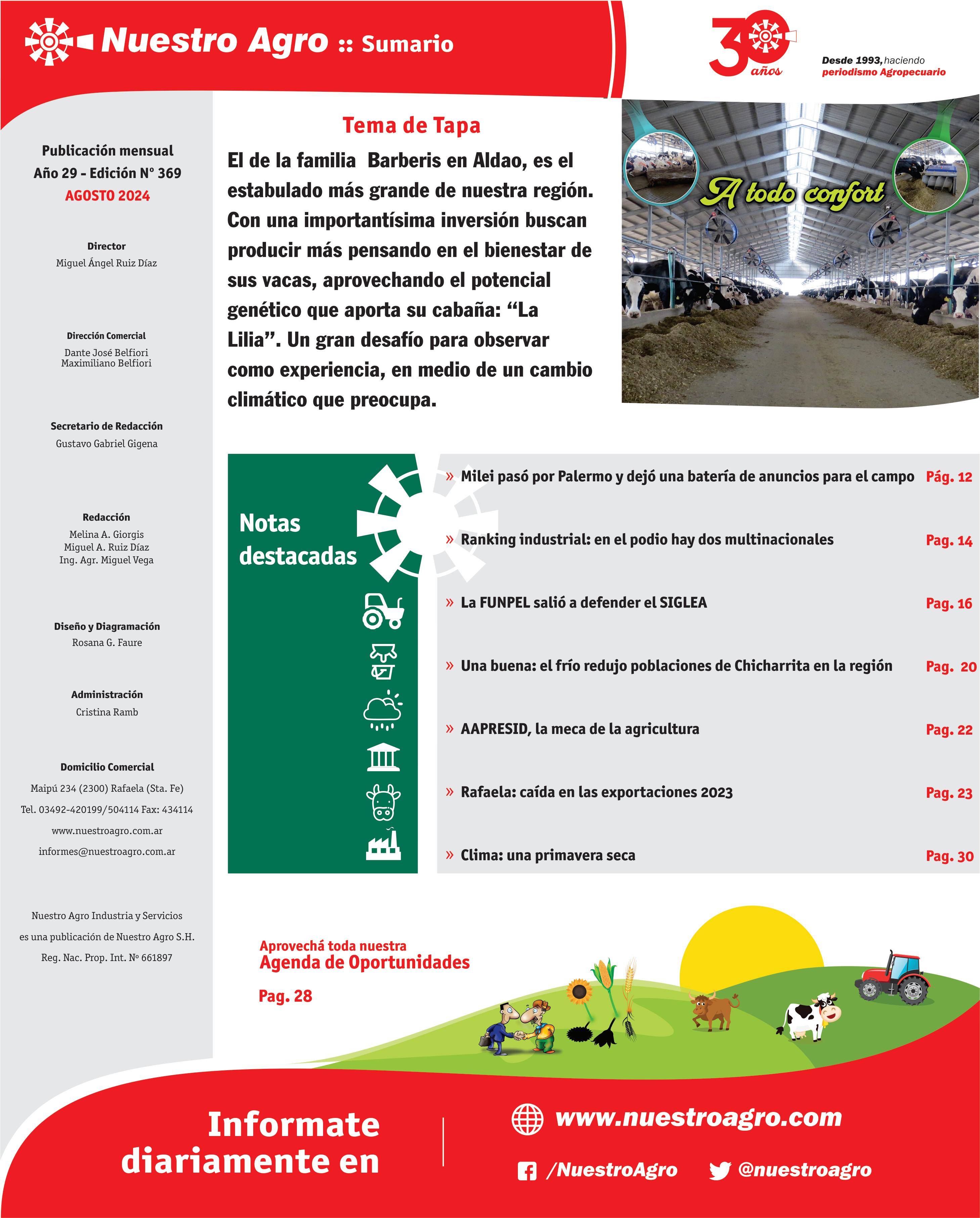 El de la familia Barberis en Aldao, es el estabulado más grande de nuestra región. Con una importantísima inversión buscan producir más pensando en el bienestar de sus vacas, aprovechando el potencial genético que aporta su cabaña: "La Lilia". Un gran desafío para observar como experiencia en medio de un cambio climático que preocupa.